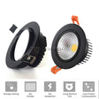 Bright Recessed LED Dimmable Round Downlight COB 3w 5W 9W 12W 18W LED Spot light decoration Ceiling Lamp AC 110V 220V black body