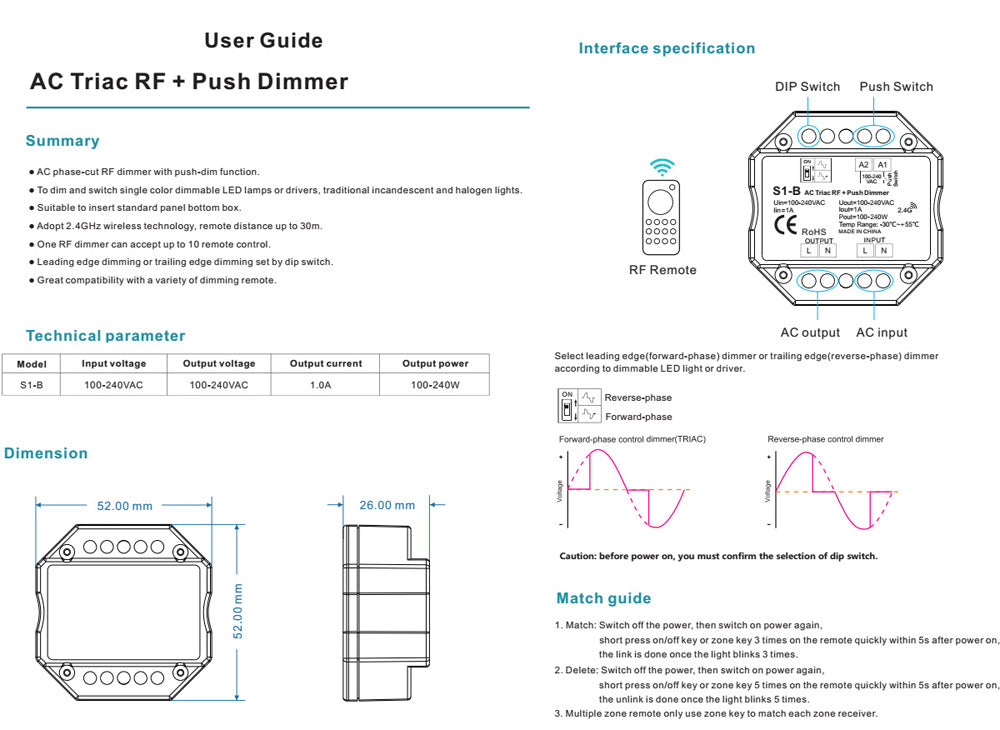 LED Dimmer Switch Triac AC 220V 230V 110V 2.4G Wireless RF Remote Dimmable Push Switch Smart Wifi Dimmer for LED Bulb Light Lamp - Model E / AC 100-240V is backordered and will ship as soon as it is back in stock.