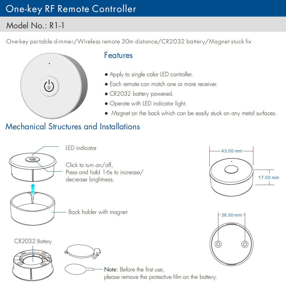 Remote Distance: 30 Meters