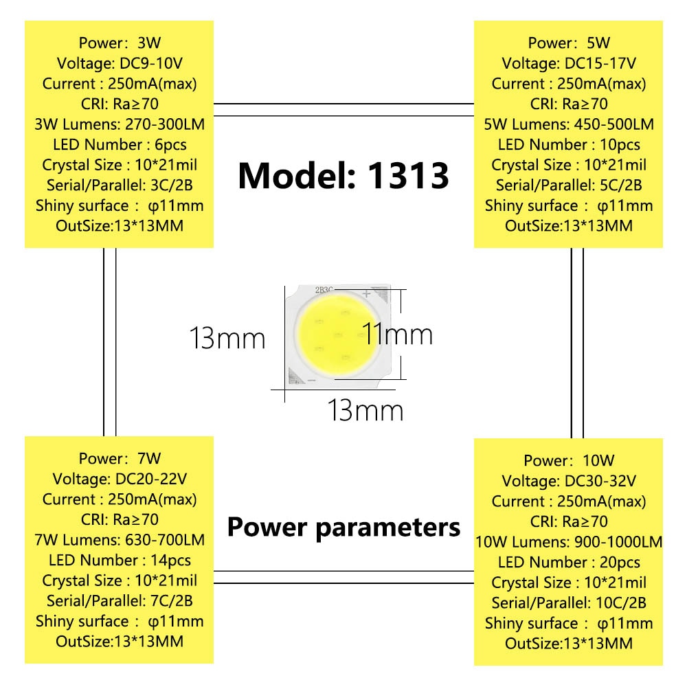 10pcs a lot 3W/5W/7W/10W 6500K/4000K/3000K LED COB Light Beads 1313 LED lamp Bead LED Bulb Chip Spot Light Downlight Diode Lamp