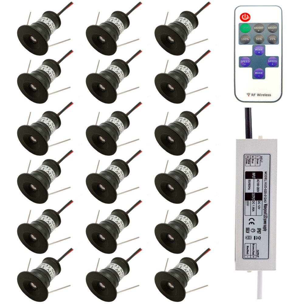 IP65 1W Mini LED Downlight Ceiling Spotlight Recessed Dimmable Spot Light with Remote Control for Showcase Cabinet Stair Canopy - Blue / 12 Lamp Dimmable Set / Black 30 Beam angle is backordered and will ship as soon as it is back in stock.