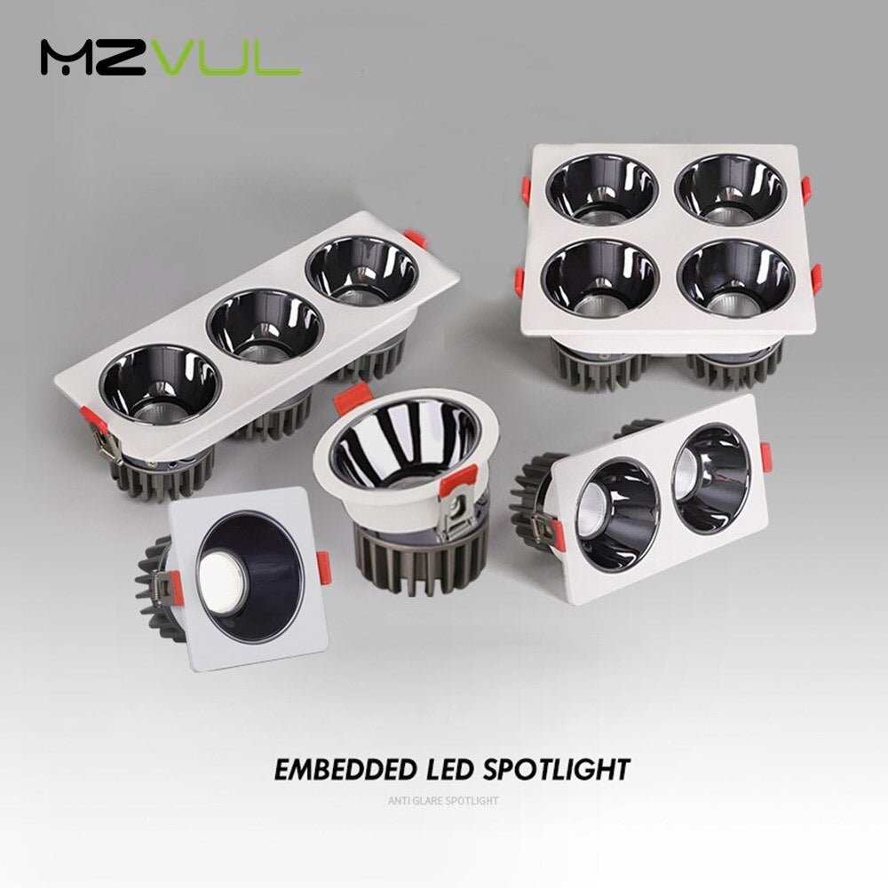 Recessed Led Downlight Dimmable Spot Light Bulb Replaceable No Flicker Led Ceiling Lamp 3 head Square Light Feature For Bedroom
