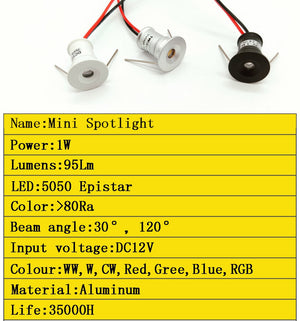 New 1W LED Recessed Cabinet Mini Spotlight Led Downlight Jewelry Cabinet Lamp DC12V LED Ceiling Star Light