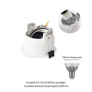 Category: 220V, Anti Glare, black, Downlights, GU10, LED, Recessed, Replaceable, White