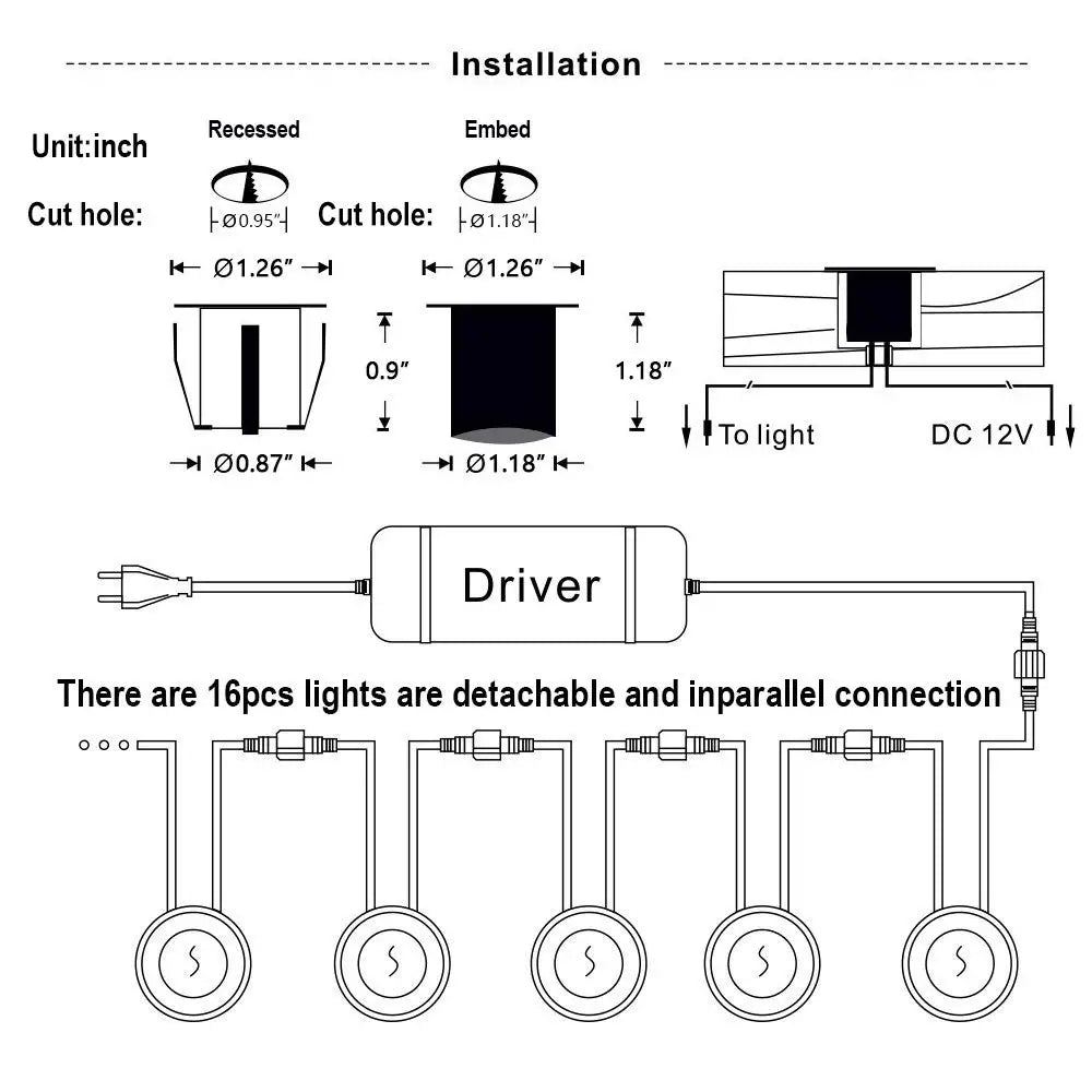 IP67 Waterproof DC12V Low Voltage Embedded LED Deck Light Garden Underground Light Stainless Steel Staircase Landscape Light - 16PCS Natural White / US Plug is backordered and will ship as soon as it is back in stock.