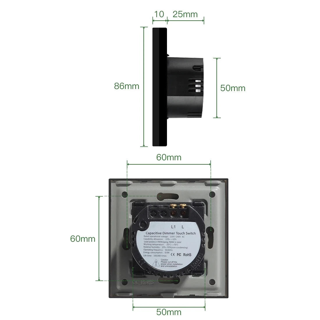 - Material: Glass Panel & Iron Plate & Plastic Switch Module