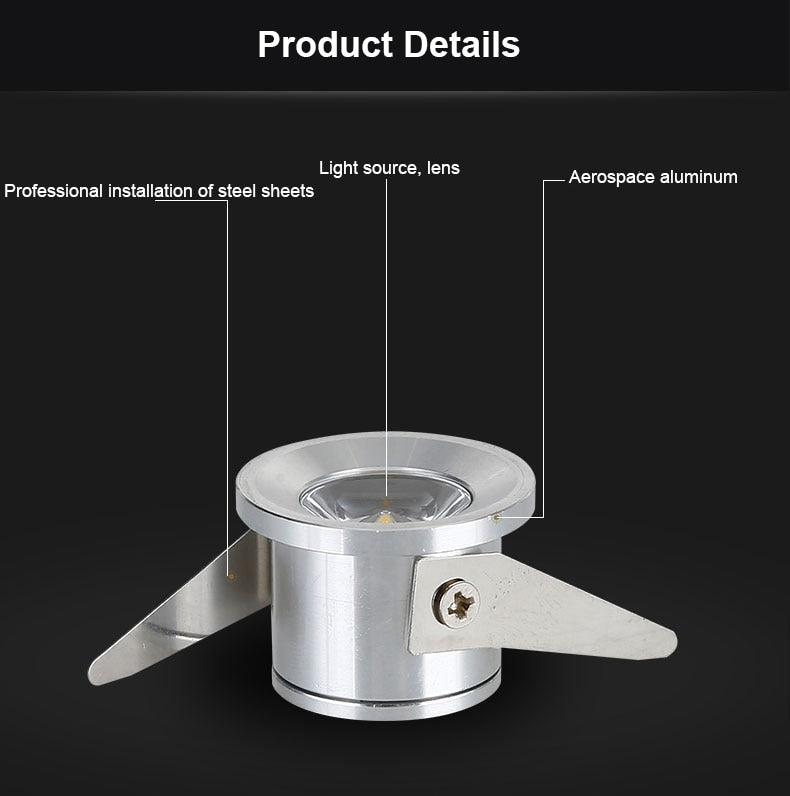 10pcs/lot Jewelry Show Case Cabinet Spot Lamp WHITE 1W Mini LED Downlights