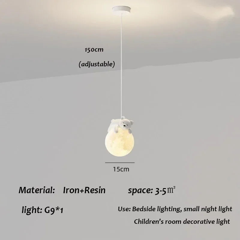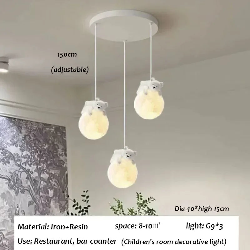 Children's Room Little Bear Pendant Lights LED Minimalist Chandelier Nordic Home Decoration Bedroom Bedside Hanging Lamp Fixture