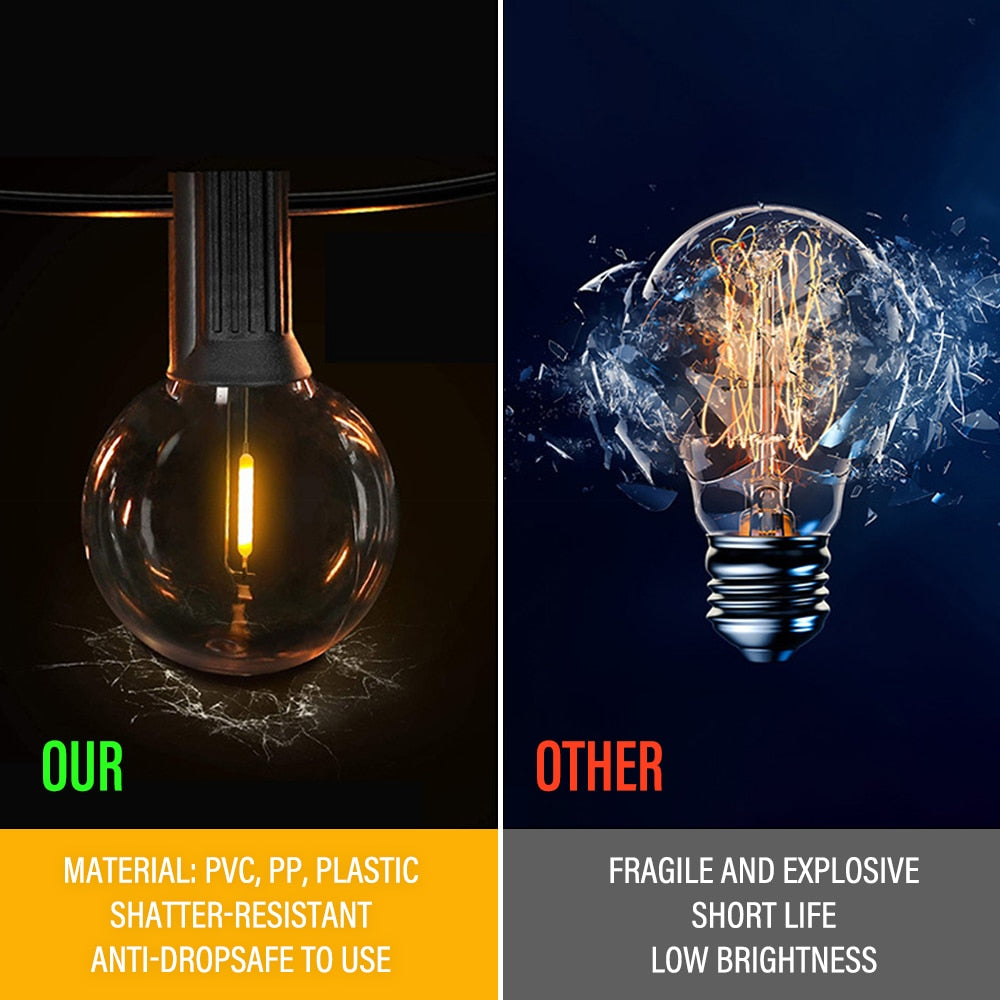 50FT LED G40 Ball String Lights Waterproof Outdoor Garden Garland String Lights Terrace Garden Pub Christmas Party Decoration