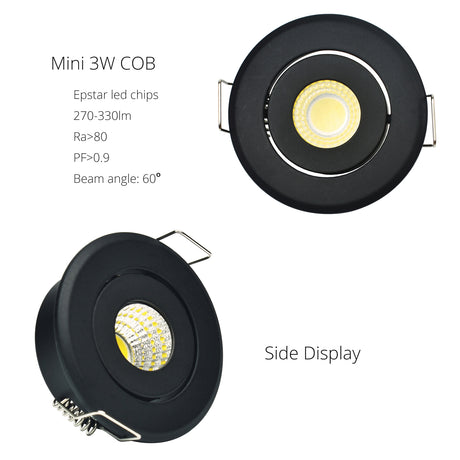 Mini 1W 3W Black Aluminum LED Downlight 85-265V Recessed Spot Ceiling light Spotlight