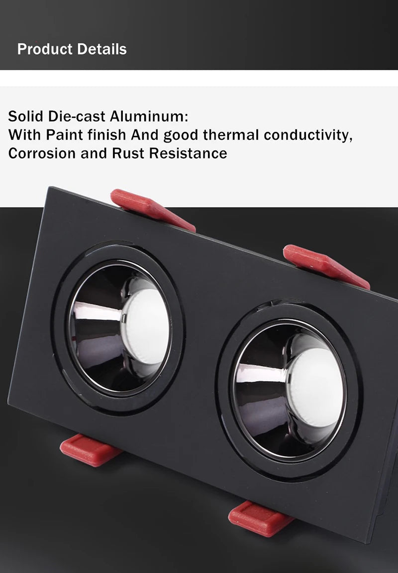 Recessed LED Ceiling Lamp 24W 10W Single/Double Head LED Spot lights COB Anti-Glare Downlight For Home Office Store Indoor