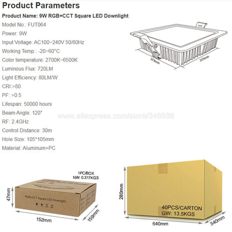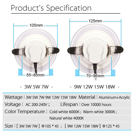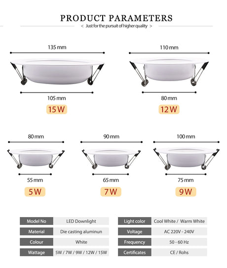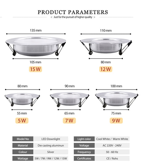 RGB Color With Remote Control Design 6W 9W 16W 24W Round LED Downlight AC85-265V