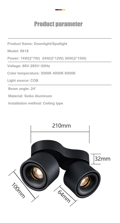 LED COB regulable Downlights ac85-265V 10W 15W 20W LED white black