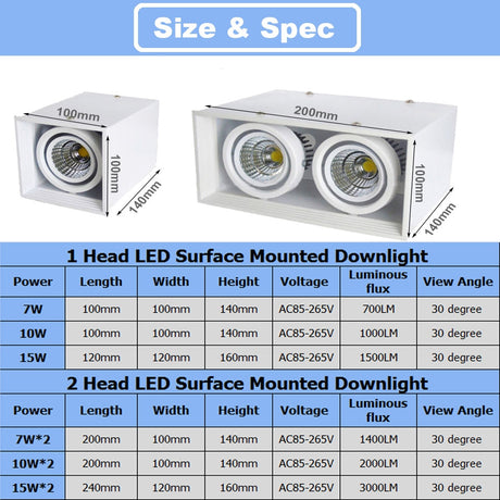 LED Downlights 7W 12W 15W Surface Mounted LED Ceiling Lamps Spot Light LED Downlights AC85V-265V