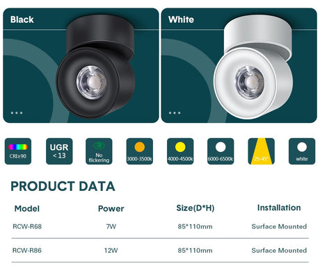 Surface Mounted 360° Rotatable LED Ceiling Downlight 7W 12W GU10 Bulb Replaceable Spot Light