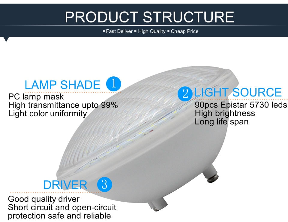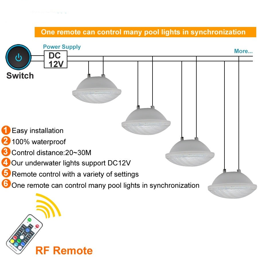 Ip68 Led Swimming Pool Light Par56 Led Waterproof Underwater Light 24W 36W RGB +Remote Controller Pond Lights AC DC 12V Piscina - Cold White / 36W is backordered and will ship as soon as it is back in stock.