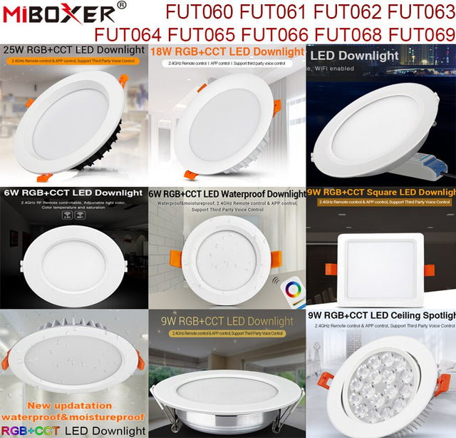 MiBoxer 6W 9W 12W 15W 18W 25W RGB+CCT LED Downlight Ceiling Spotlight FUT060 061 062 063 064 065 066 068 Indoor Panel lighting - FUT068 6W is backordered and will ship as soon as it is back in stock.