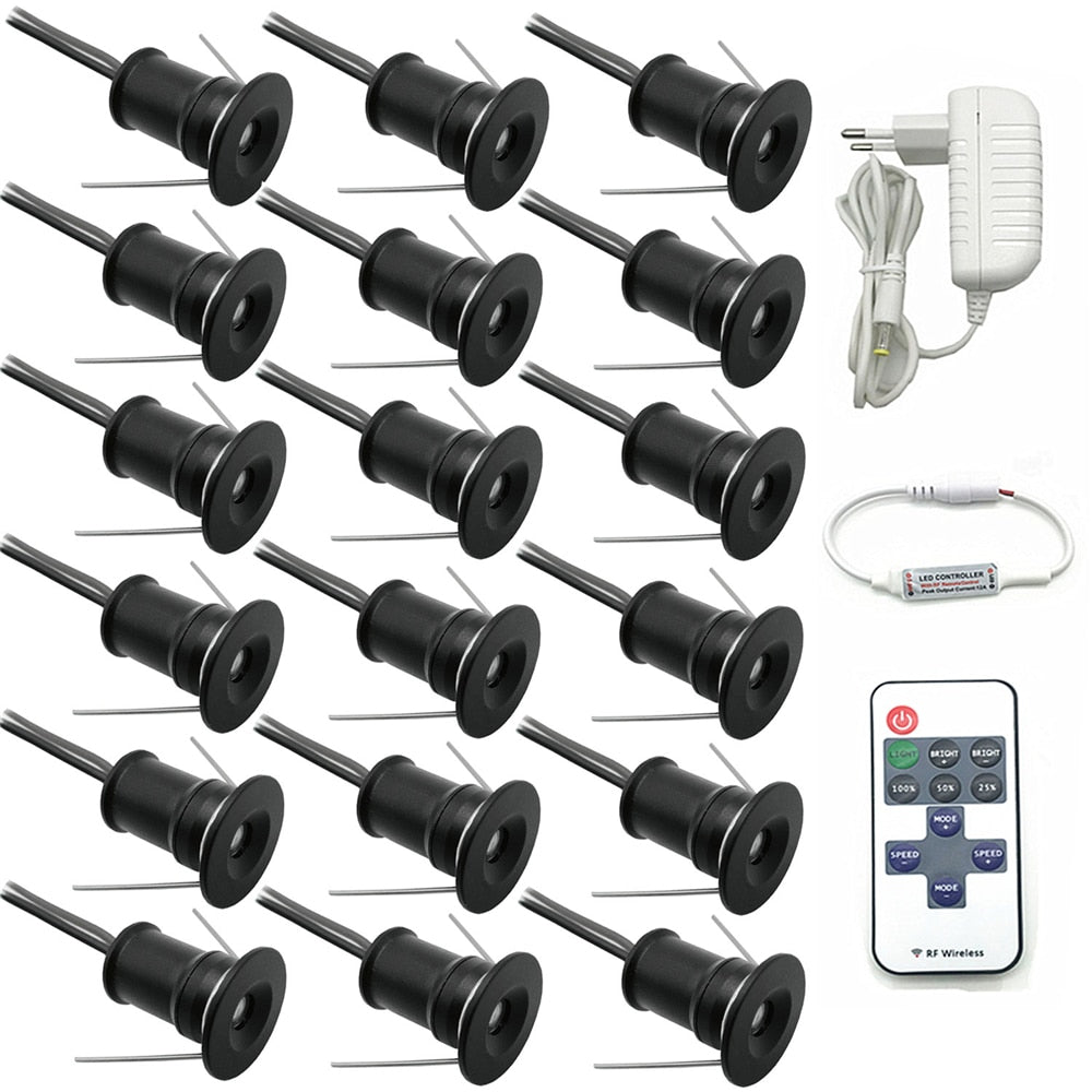 12V Mini Indoor Downlight Dimmable Led Spots Canopy 1W Stair Cabinet Light Recessed Ceiling Spotlight with Remote Controller
