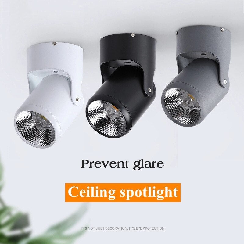 Dimmable Rotating LED Downlight, Surface Mounted Adjustment, ac85-265V COB, 5W7W10W12W 15W, Ceiling Spotlight, 1pc