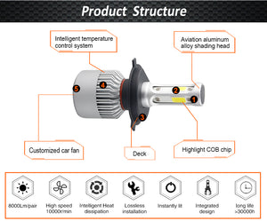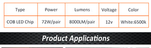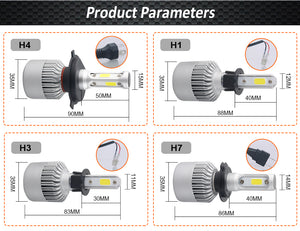 Category: 12V, 3000K, 36W per bulb, 4300K, 6500K, 72W, 72W per pair, 8000K, 8000LM, 9004, 9005, 9006, 9007, 9012, COB LED, H1, H11, H13, H3, H4, H7, S2, white