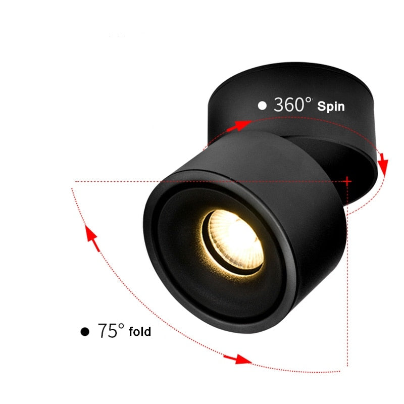 Dimmable folding surface mounted spotlight led living room ceiling ceiling downlight cob adjustable angle clothing store 7W 12W