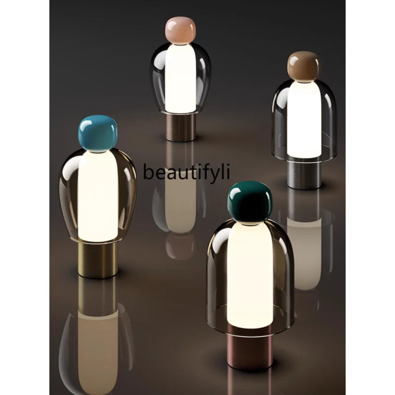 Glass Table Lamp Dimmable Personality Creative Person Walking Bedroom Bedside Lamp Portable Mushroom Lamp portable table lamp