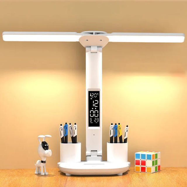 Table Lamp LED Double-headed Multifunction Foldable Touch With Calendar Clock USB Desk Lamp For Bedroom Bedside Reading Light