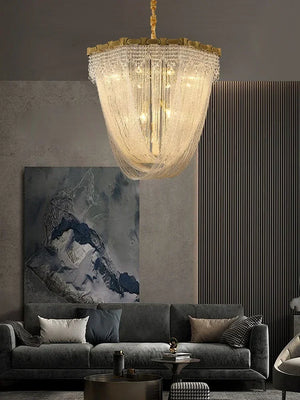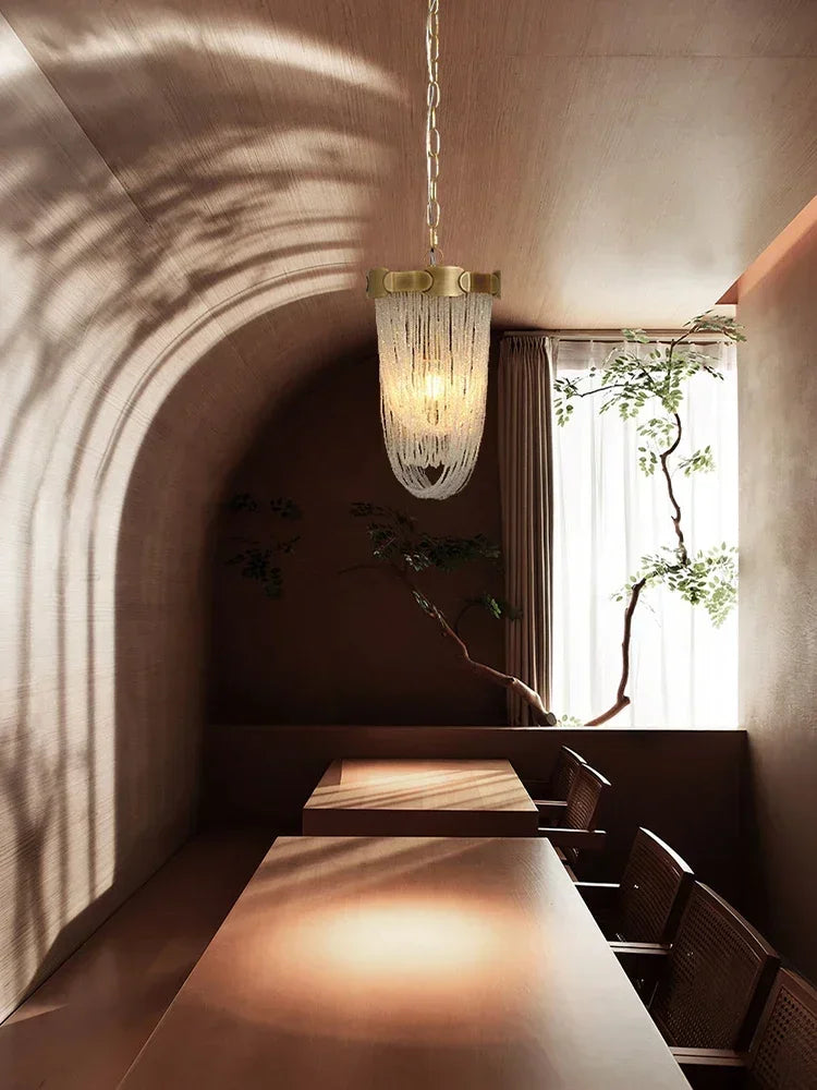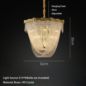 Luxury Brass Crystal Bead Curtains Chandeliers 2025 Modern LED Home Decor Hanging Lamps for Ceiling Living Room Lighting Fixture