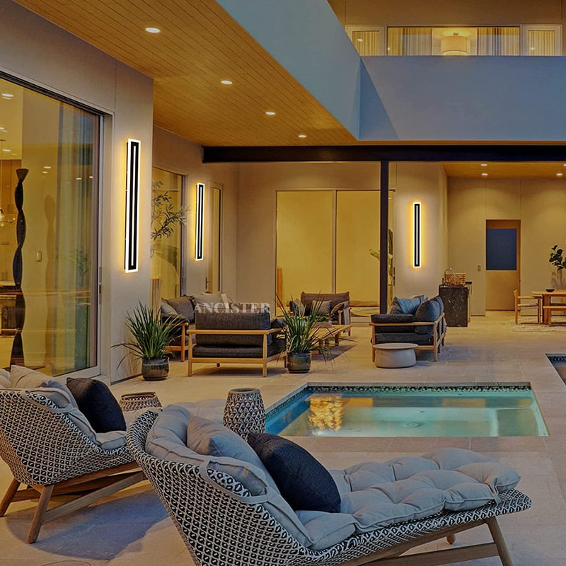 Outdoor Waterproof IP65 LED Long Strip Wall Light Modern Wall-Mounted Lamp Sconce Suitable for Living Room Courtyard Porch Patio